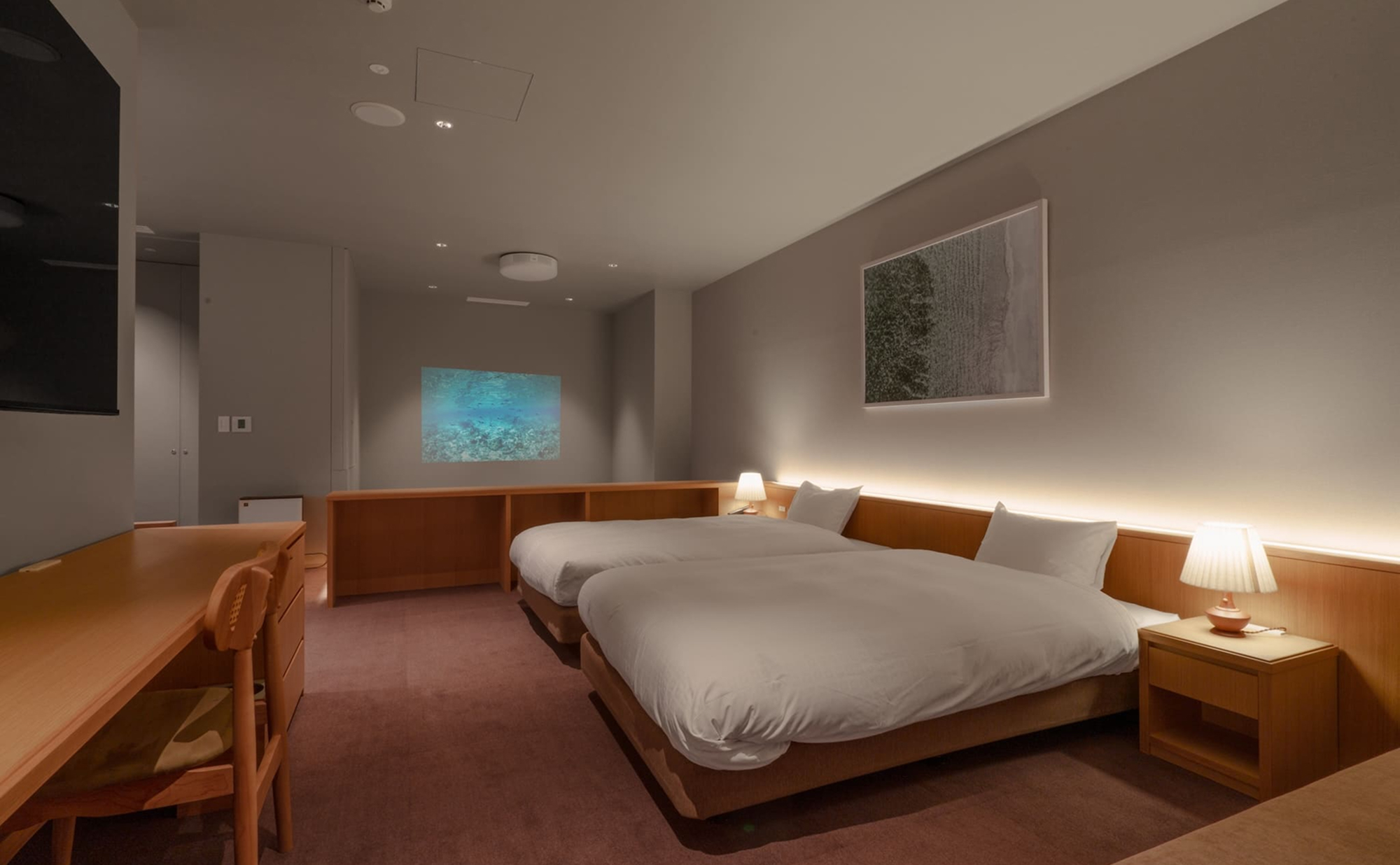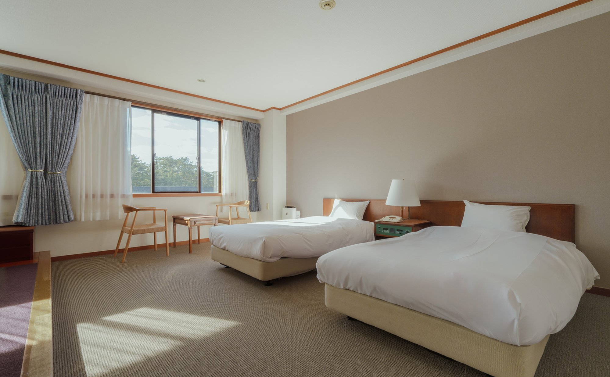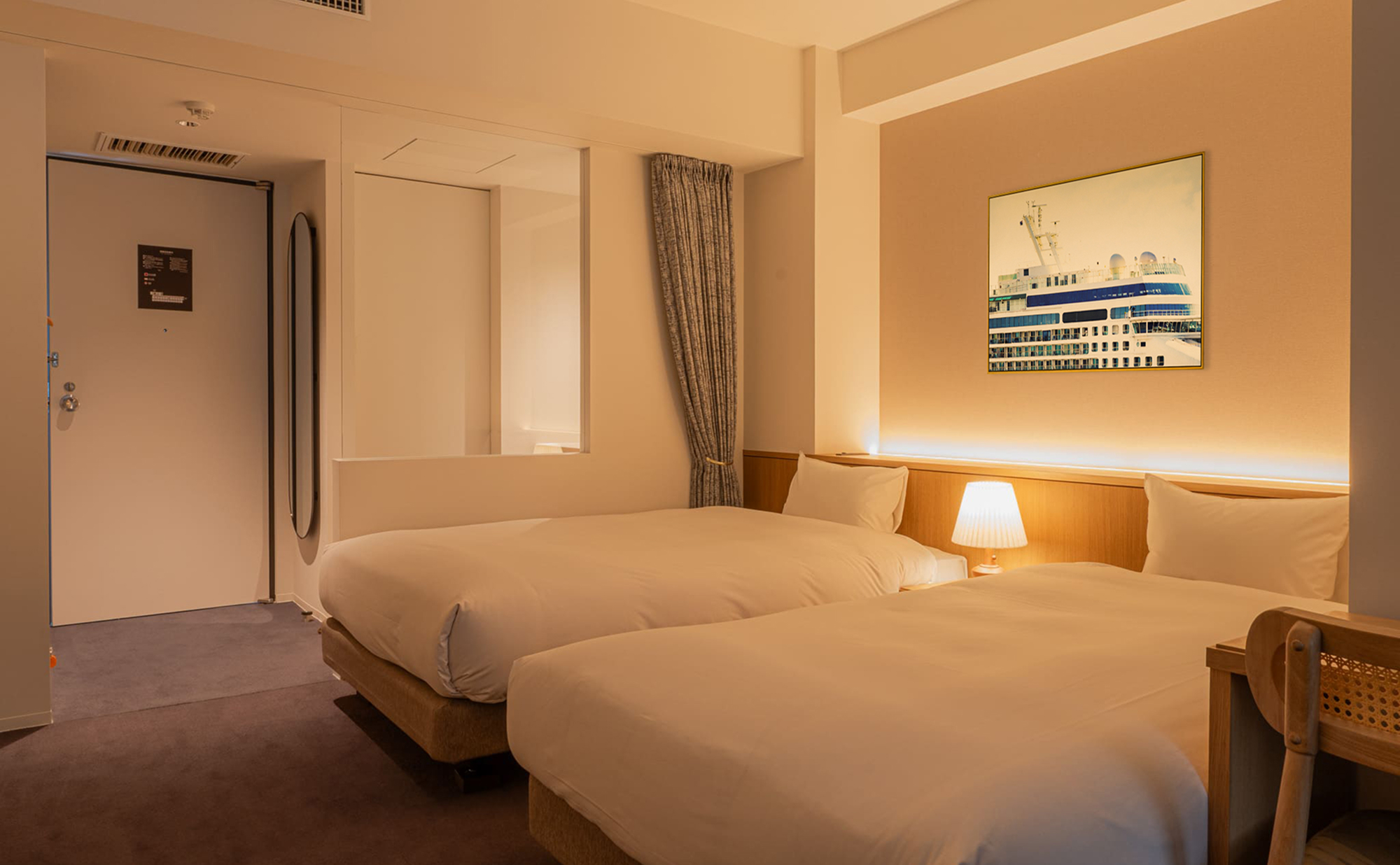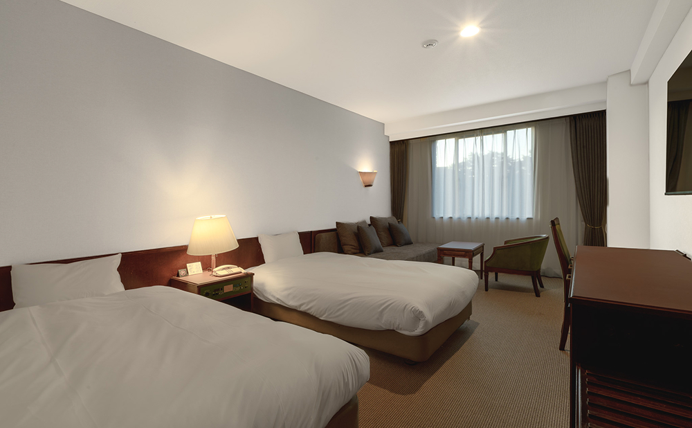 落ち着いた雰囲気の、シンプルなツインルーム。
