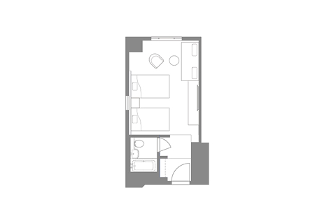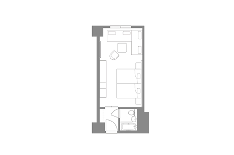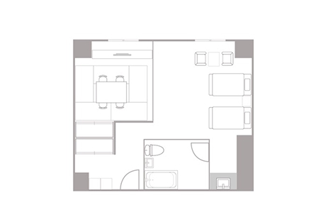 眺望を設けない分、手頃な価格でご利用頂けるため、観光やビジネスの拠点としても便利な一室です。広さ:26平米
