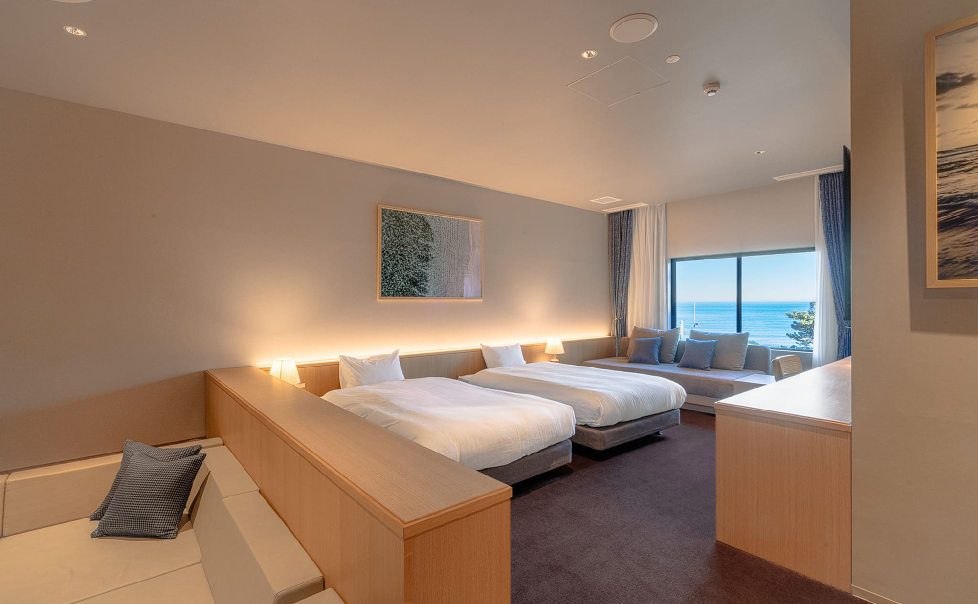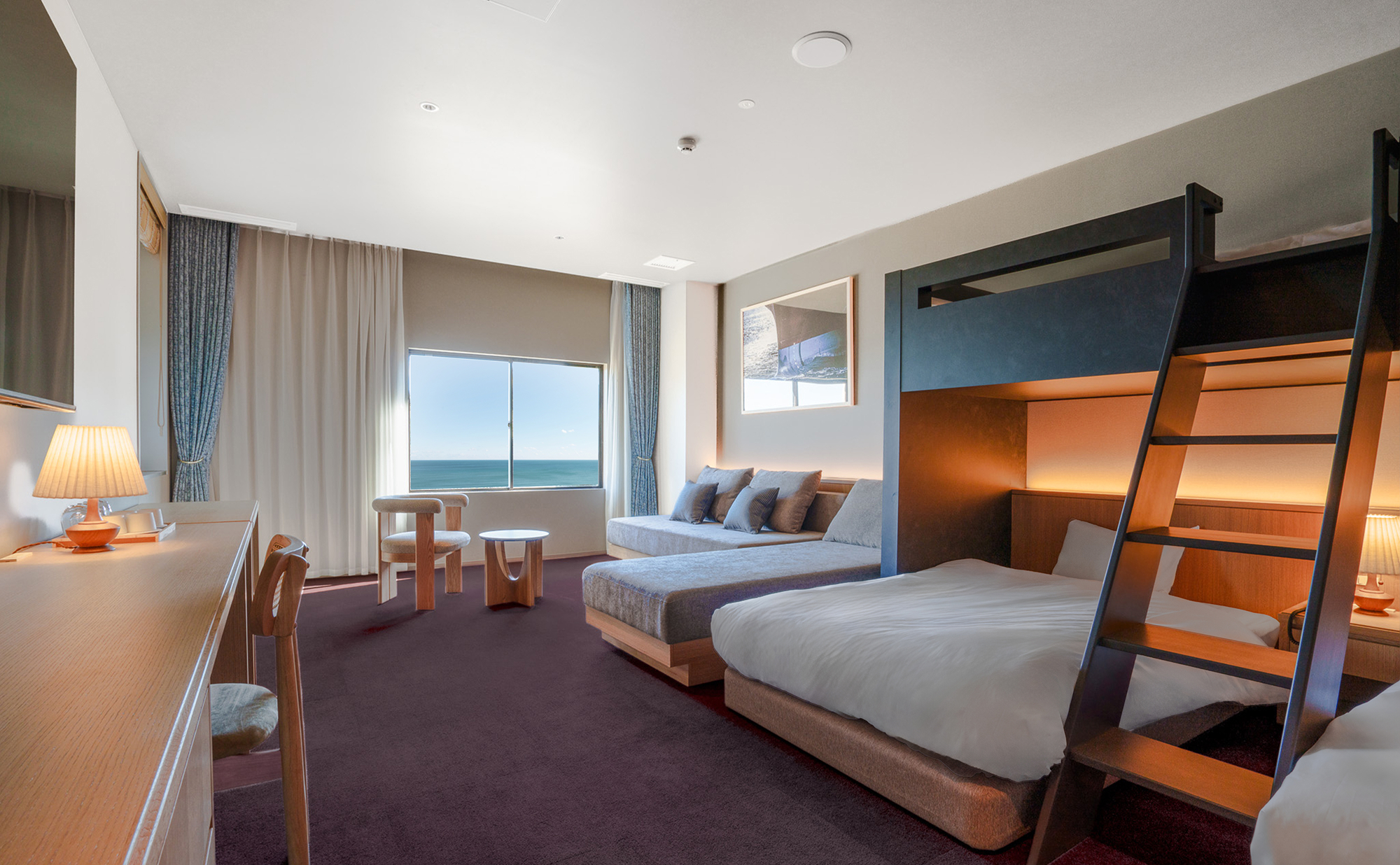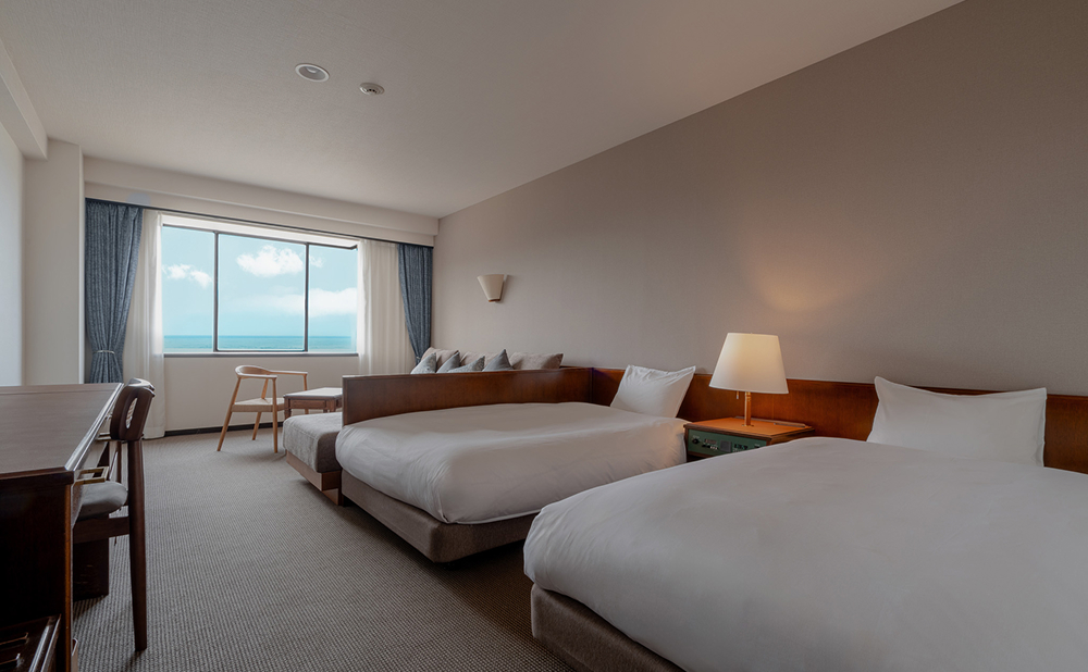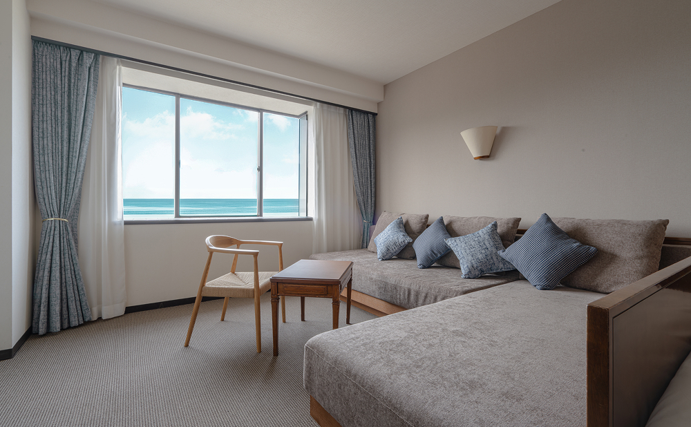 サウナ付きスイートや海を望む客室、ゆったり過ごせるファミリータイプまで、7タイプの客室をご用意しています。