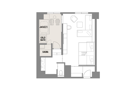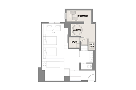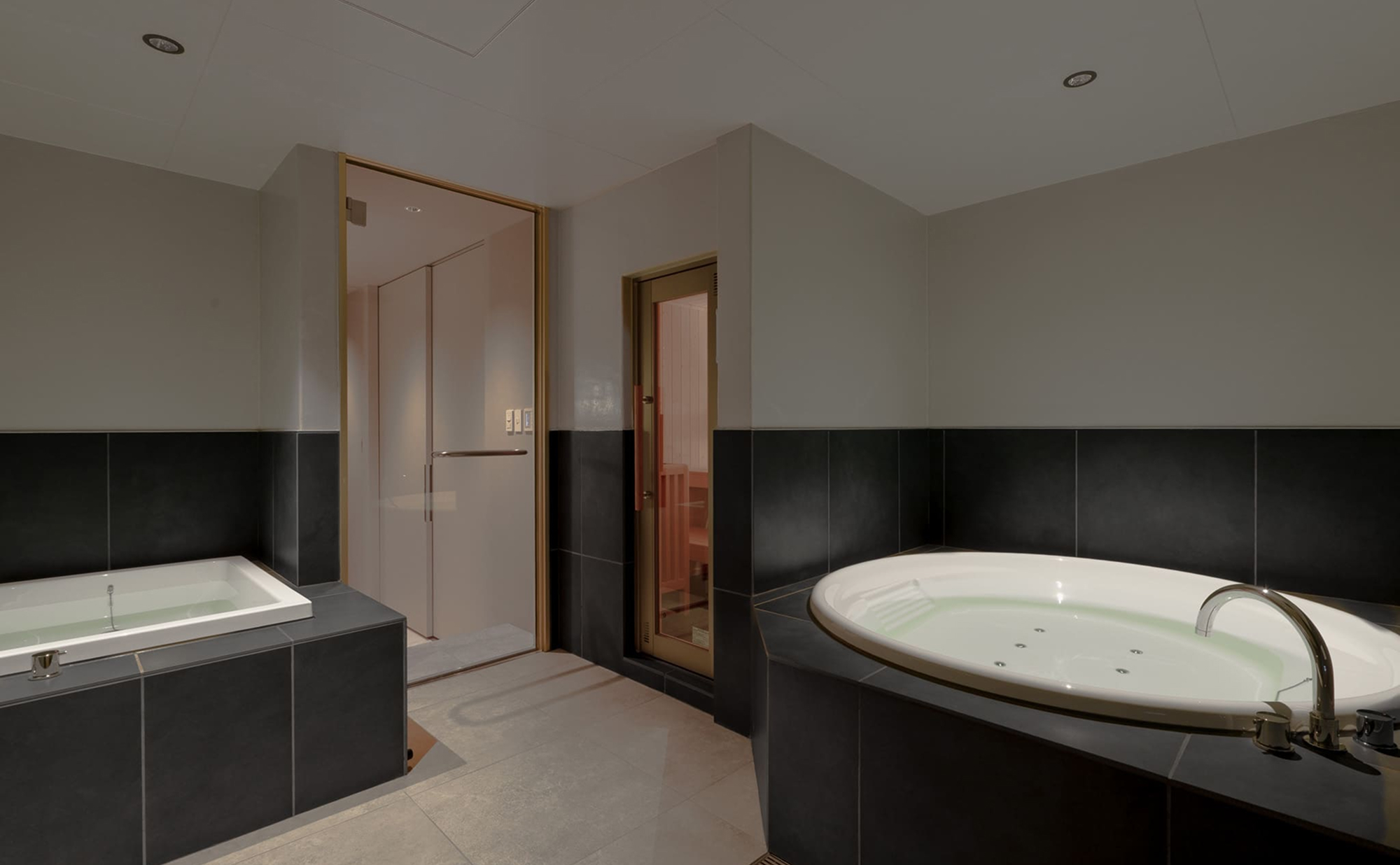 メディテーションサウナ・水風呂・ジャグジー・整いスペースを設えたスイートルーム。