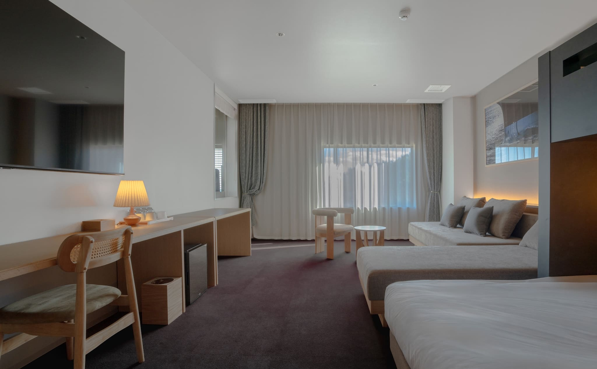 大画面スマートTVや小上がりのシネマスペース完備で、ファミリーや推し活にもおすすめの客室タイプです。広さ:77平米