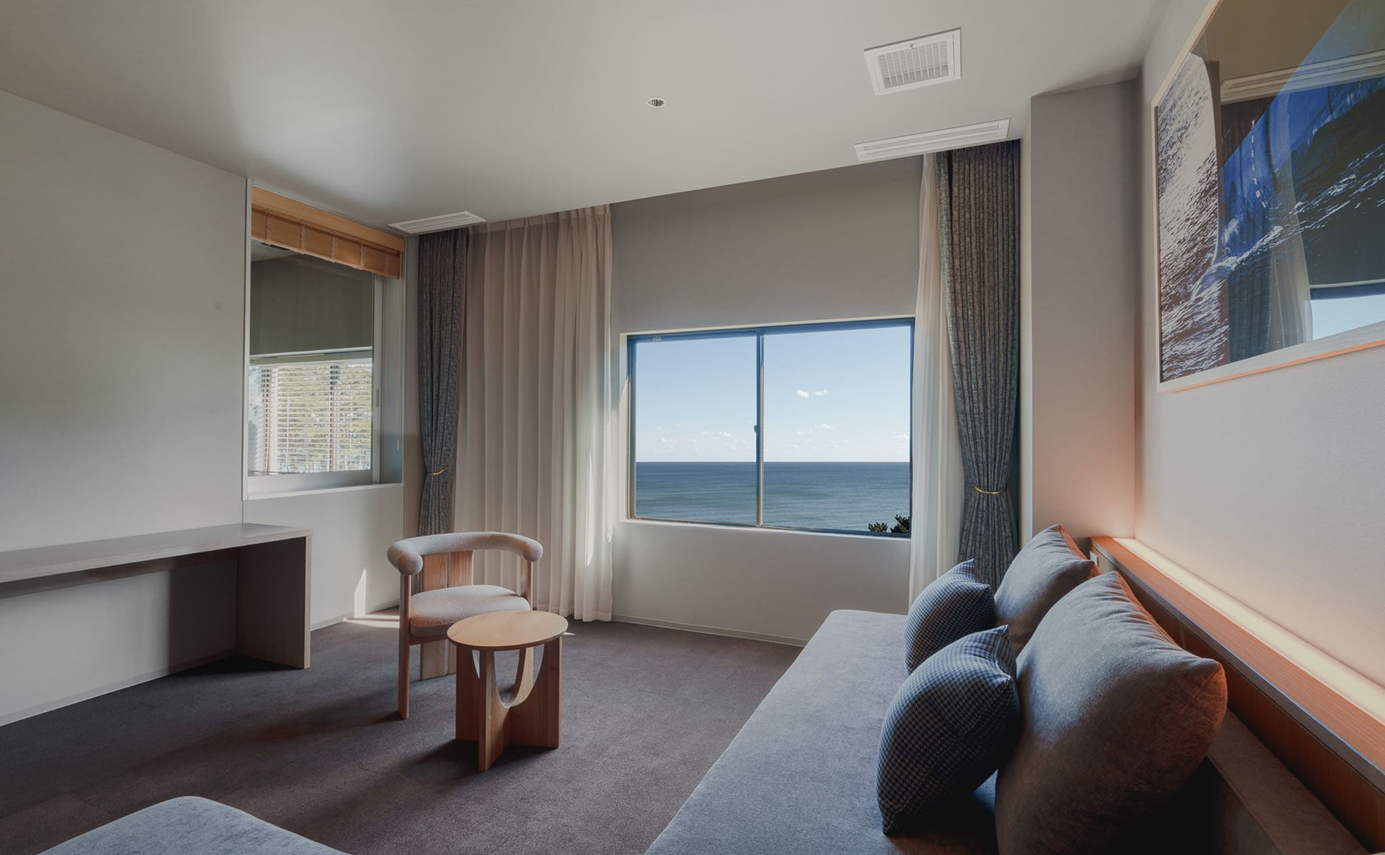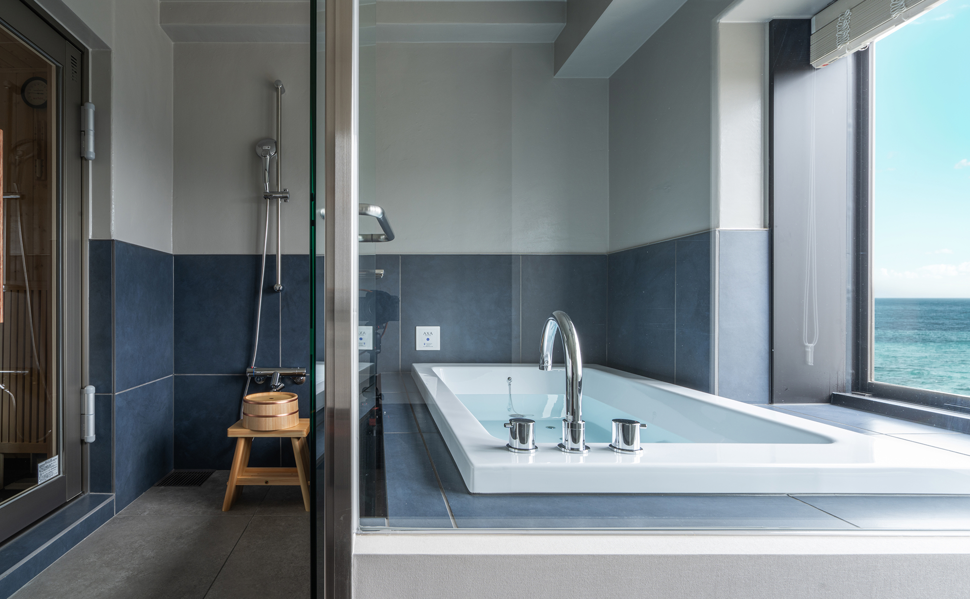 大洗の海を望むオーシャンビュー客室に、プライベートサウナ・ジャグジー水風呂・整いスペースを完備。