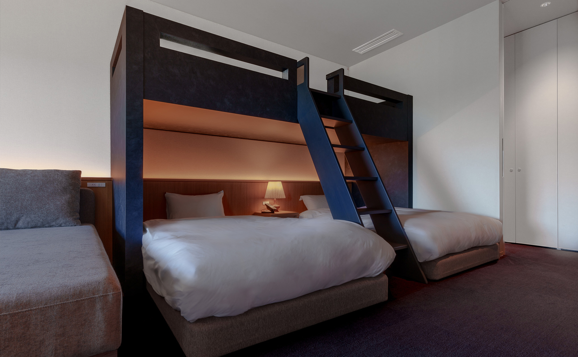 バンクベッドを備え最大5名様まで利用可能な当客室は、 ファミリーやグループ旅行におすすめです。広さ:68平米