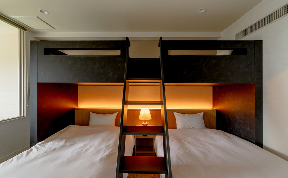 バンクベッド付きの3名定員で、友人同士や家族旅行にも最適です。広さ:33平米
