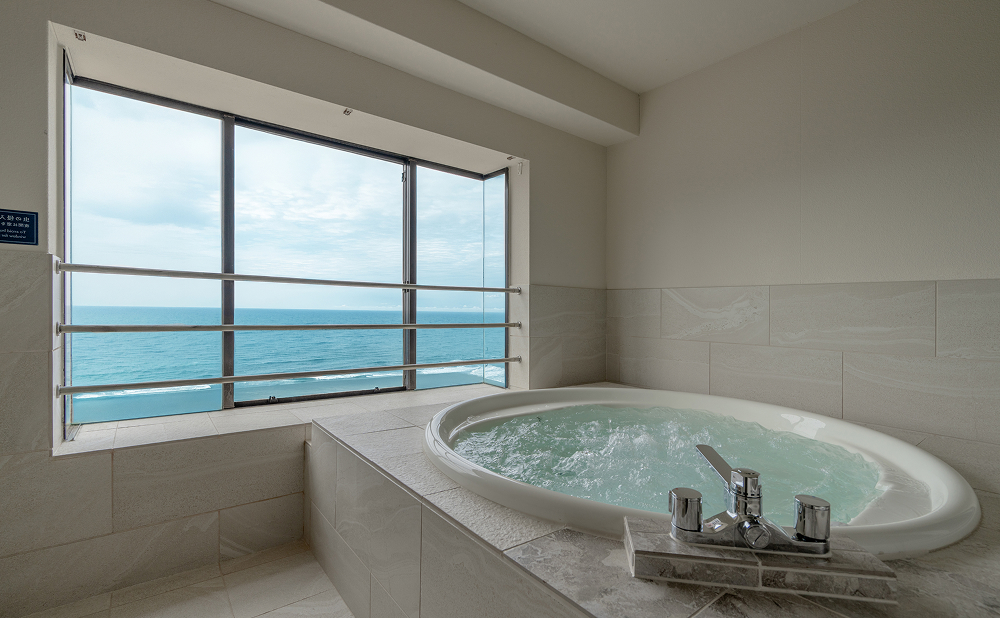 大洗の海を望む、心地よいジャグジー付き客室。