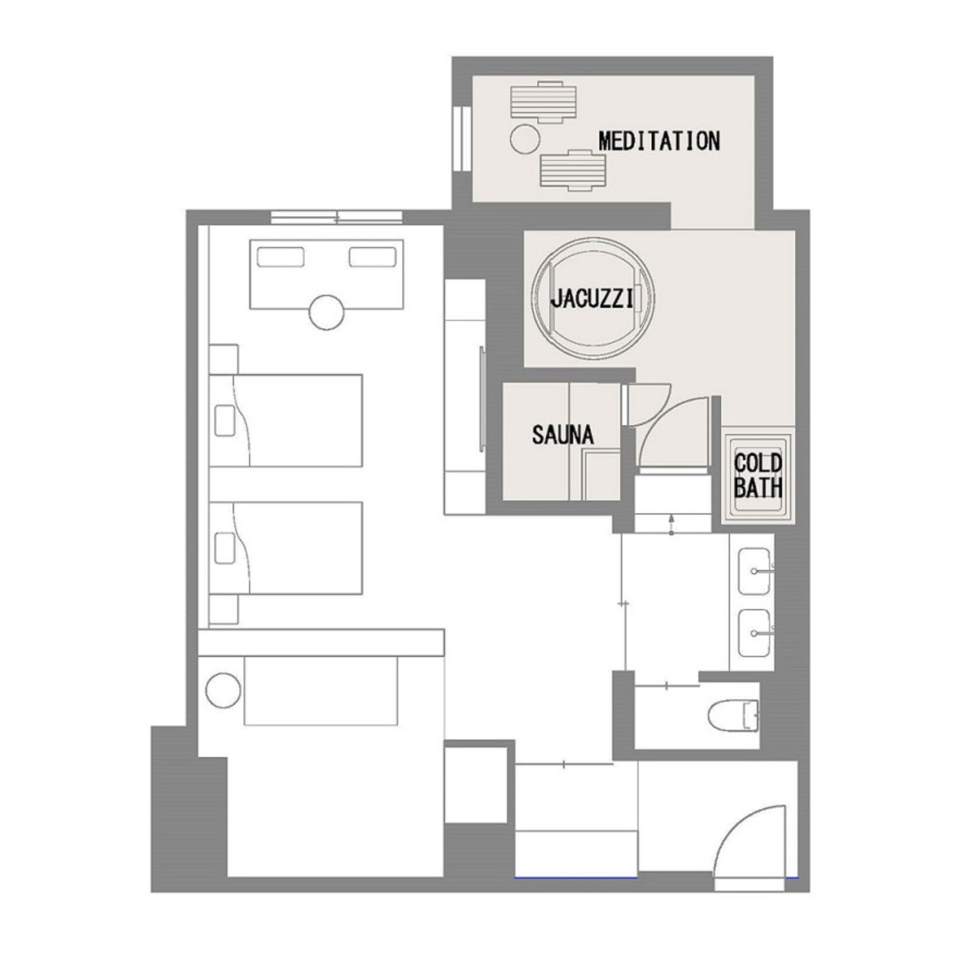Healing Sauna Suiteメディテーションサウナ、水風呂、整いスペースを備えた、6名様定員のスイートルームです。