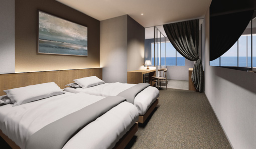Standard Twin Room海側に面したスタンダードツインは、 機能性や快適性にこだわった一室です。