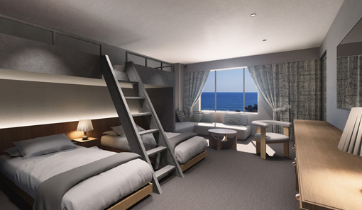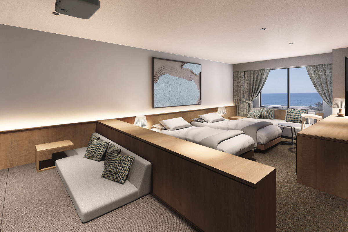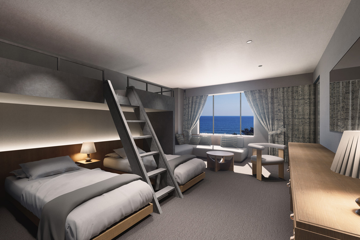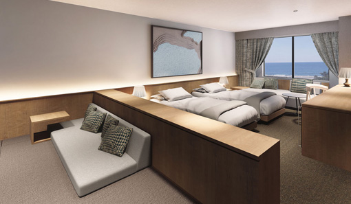 Deluxe Twin Room海と空、そして豊かに広がる松林の全てを独占できる最上階の贅沢なお部屋です。都会では味わえないゆったりとしたひとときを心ゆくまでご堪能ください。